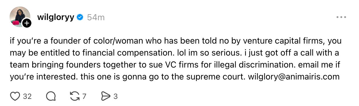 If @wilgloryy hasn’t come across your timeline yet, you need to reset your algorithm. She is into 100 days of a daily cold email campaign petitioning MacKenzie Scott to deploy $1 billion to 1,000 Black women founders at $1M each.