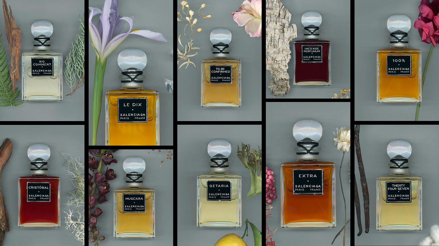 We’ve been covering the hyper-growth of the fragrance category quite extensively here on SF so I’m not surprised at the revival of the Balenciaga perfume, which by the way I’m not a fan of, for no other reason than that it’s outright hideous. Ordinarily, when tears form in the wells of my eyes it’s because I find something so beautiful, so the experience I’m feeling right now is a new one. It’s like I just started a fragrance brand and still print the labels at home because I can’t afford a screen printer. And my younger cousin did the typography in Word. This is unacceptable.