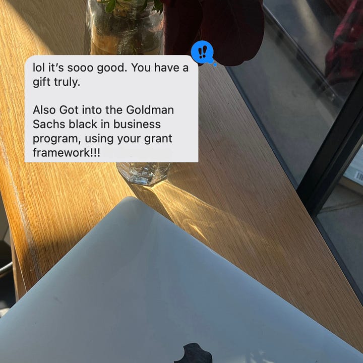 ➡️ If you’re applying, my Grant Strategy Blueprint is made for this (it’s the same system that’s helped me win over $130K in non-dilutive funding in 18 months). My clients have gone on to win programs like Sephora Accelerate, Goldman Sachs, BGV and more…