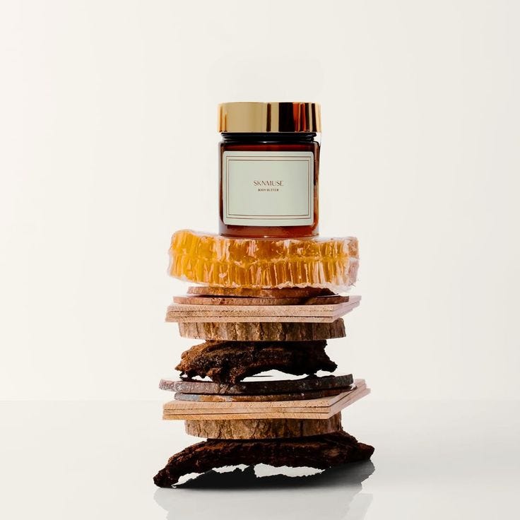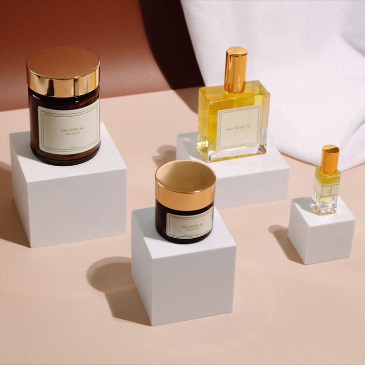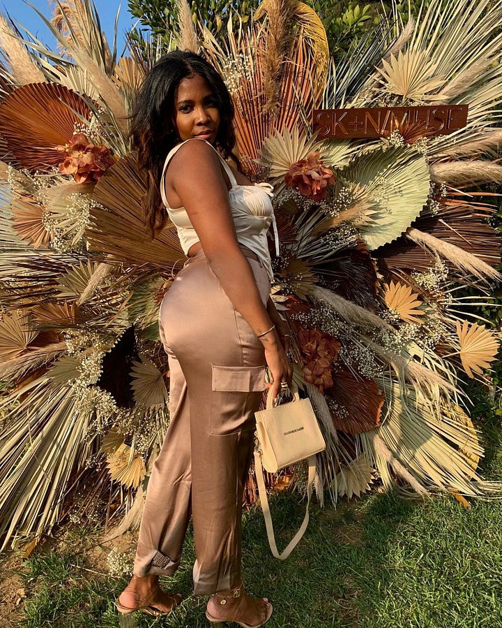 Ezinne and I met 4 ish years ago through the Glossier Grant Program back when body care was still a sleepy category, and we were the only two brands repping it. I had been admiring SKNMUSE’s stunning social creative from afar, and was excited when Ezinne won because I would’ve otherwise been too shy to get to know her.
